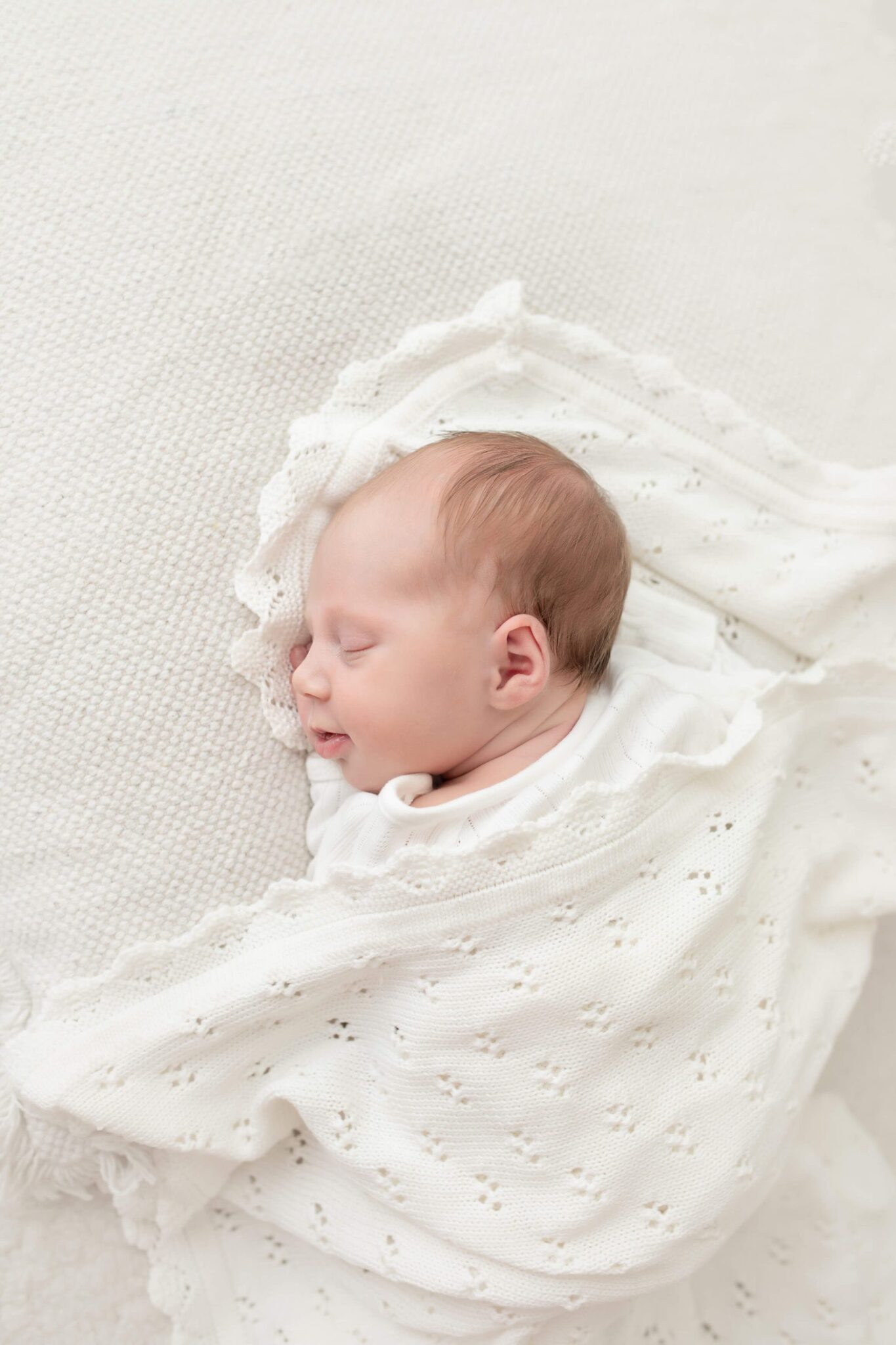 Ideally Newborns should be around 2-3 weeks old for curled-up, sleepy newborn photos. However, we’ll happily photograph any age, from at least 1 week. Babies around 5-6 weeks are awake, sometimes smiling. Babies around 4-5 months are trying tummy time, which is an entirely different stage. We love all ages!